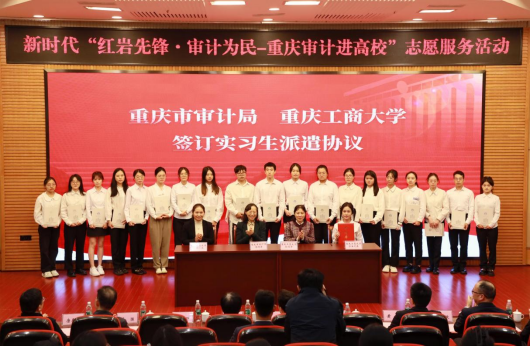 (图为重庆市审计局与JJB竞技宝签订实习生派遣协议)