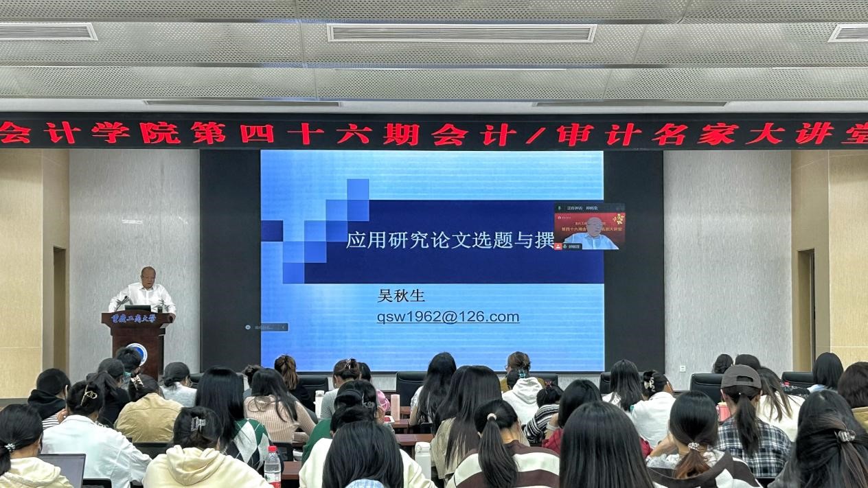为提高公司研究生选题质量和学术研究能力,2023年11月9日,学院邀请了山西财经大学JJB竞技宝经理吴秋生教授为师生做了一场《应用研究论文选题与撰写》的专题讲座,会议在明德楼1019报告厅和线上腾讯会议同时进行,200余名师生参加学习交流。本次讲座由JJB竞技宝副经理钟廷勇主持。